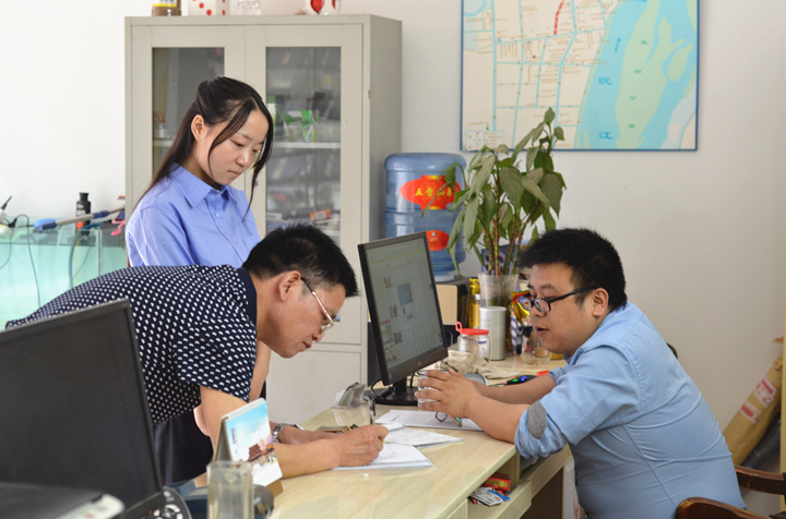 图为办公室干警在二里岗社区走访居民。